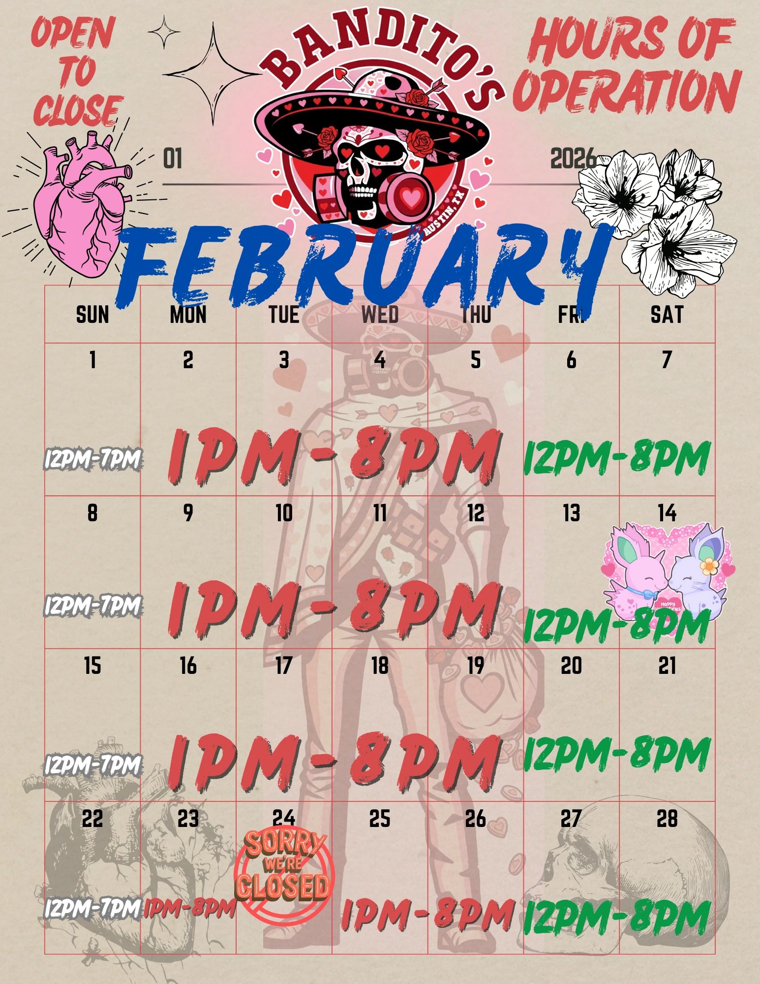 We update our store hours every month! Be sure to check here for all up to date information.